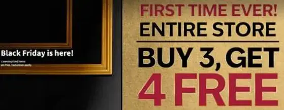 Black Friday is here! Shop in store and get everything for buy 3, get 4 free.